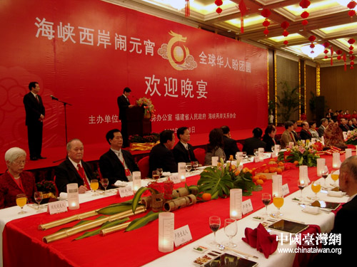 中國臺灣網2月19日福州消息   18日晚,國務院僑務辦公室、福建省人民政府和海峽兩岸關系協會在福州市舉辦晚宴,歡迎來閩參加“海峽西岸鬧元宵 全球華人盼團圓”活動的來賓。本次活動吸引了來自世界上五大洲40多個國家和地區的500多位華僑華人、港澳同胞和臺灣同胞參與。