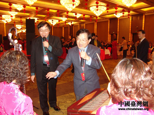 在晚宴現場,紐約中國和平統一促進會會長花俊雄和臺灣中國統一聯盟主席王津平共同唱起了臺灣民謠《綠島小夜曲》和《望春風》,表達參加此次活動的喜悅之情。花俊雄會感慨地說:“《望春風》在今天這個場合唱,特別合適,望春風,春風到了,海峽兩岸盼統一,鬧元宵盼團圓,就是望春風。”