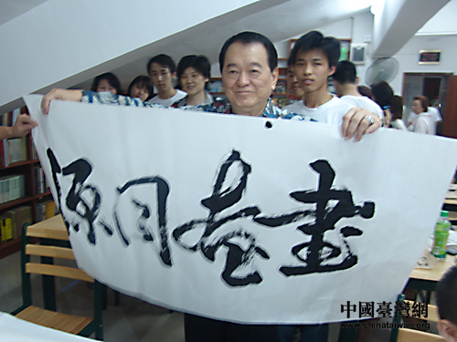 當(dāng)看到社區(qū)書(shū)法教室的學(xué)生能寫(xiě)出一手漂亮的毛筆字時(shí),美國(guó)《世界日?qǐng)?bào)》社長(zhǎng)李厚維揮毫寫(xiě)下了“氣魄”兩個(gè)大字以表贊揚(yáng)。他表示,兩岸應(yīng)進(jìn)一步加深文化、教育交流,相互取經(jīng)學(xué)習(xí),共同提高。