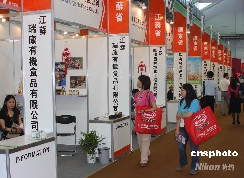 展會設立了大陸展區,三十九家大陸廠商前來參展。武漢市漢口精武食品公司的攤位在推銷袋裝“中國鴨脖王”。南京瑞康蜂業有限公司在介紹有機蜂王漿。“中茶”公司布置的的展位引人注目,燈箱醒目地映出一九八六年英國女王伊麗莎白訪華時,云南省長和志強向女王贈送“中茶”產品的照片,展柜中的各種普洱茶吸引了許多臺灣觀眾駐足。