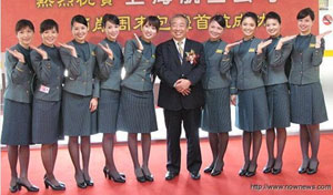 臺(tái)灣長榮與立榮航空每次記者會(huì)總會(huì)亮相的空姐美女。臺(tái)灣東森新聞?dòng)浾唿S志偉攝