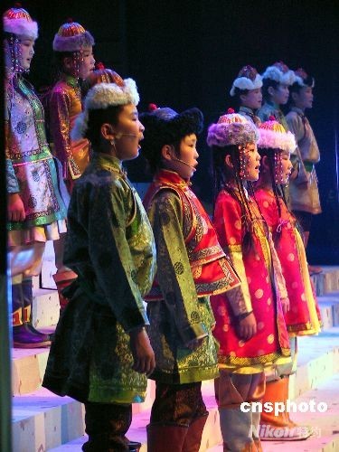 來自大陸呼倫貝爾的二十九個內蒙古的孩子二十三日晚間登上臺北“國父紀念館”的大禮堂,為寶島臺灣的觀眾朋友帶來了大草原的天籟之音。 中新社發 徐長安 攝