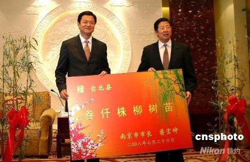 南京市長晤臺北縣長 向臺北縣贈三千株柳樹苗