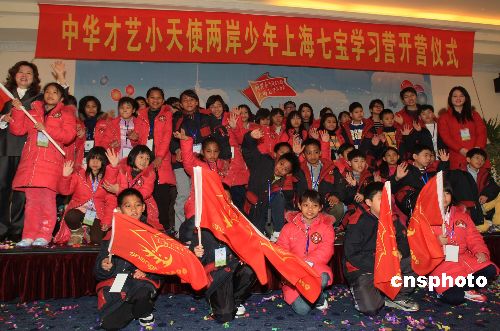 2月3日,43名來自臺灣的小學生,在上海展開為期七天的才藝學習,他們將學習傳統戲曲、武術等。圖為“中華才藝小天使”們在上海舉行學習營開營儀式。中新社發 潘索菲 攝