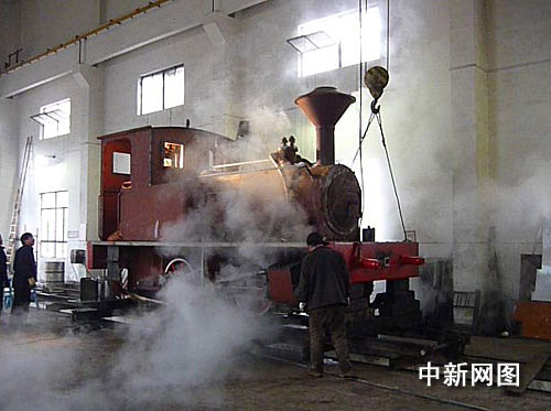 中新網(wǎng)杭州3月9日電(記者龔讀法 實習(xí)生金斌)日前,在杭州市濱江區(qū)的上海鐵路局公務(wù)機械段錢塘江基地里,一輛復(fù)古的蒸汽機車下線并進行試運行。據(jù)了解,這是中國近50年來首輛新造的蒸汽機車,原型為臺灣第一輛蒸汽機車“騰云號”,預(yù)計在2009年3月初運達臺灣并正式投入運營。