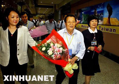 當(dāng)日,有著“華夏第一村”美譽的江蘇省江陰市華西村的老支書吳仁寶率領(lǐng)該村赴臺旅游首發(fā)團(tuán)抵達(dá)臺北。華西村黨委書記吳協(xié)恩曾在今年5月舉辦的“華西誠信節(jié)”上宣布,華西村將組織1000名村民包機(jī)前往寶島臺灣觀光旅游,并將在那里開辦酒店和旅行社。新華社發(fā)(吳景騰 攝)