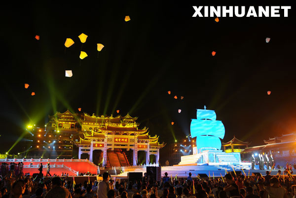 9月20日,兩岸迎中秋晚會上升起孔明燈。