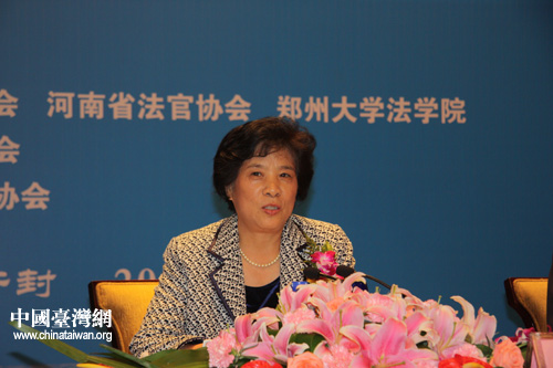 第二屆海峽兩岸法學(xué)學(xué)術(shù)研討會今日下午在河南開封閉幕,會議取得豐碩成果。圖為中國法官協(xié)會副會長王秀紅作總結(jié)報告。(中國臺灣網(wǎng) 楊麗 攝)