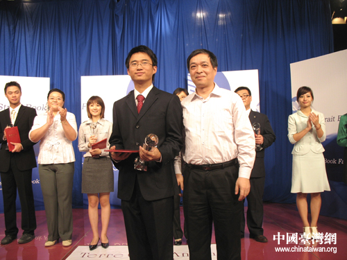 獲得本次兩岸大學生演講比賽冠軍的北京大學學生黃河清(左)。(中國臺灣網 徐麗麟 攝)