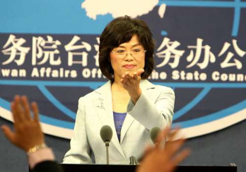 圖為2009年6月24日范麗青主持國臺辦新聞發布會。在國臺辦表達將就兩岸金融監理合作備忘錄(MOU)盡快達成共識并簽署,以及兩岸經濟合作架構協議(ECFA)有望在今年下半年談起來等利好刺激下,臺灣金融股全面狂飆,27檔個股亮燈漲停作收,加權指數一度上漲逾300點,終場以上漲182點,6380點作收。