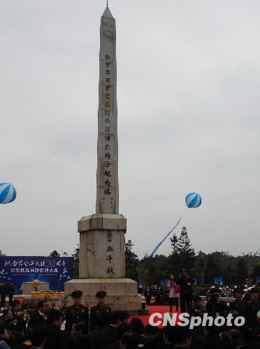 當日南寧,天空陰云彌漫,冷風蕭蕭。上午九時三十分,身著深色長衫、胸前佩戴黃菊的中國全國人大常委會副委員長、民革中央主席周鐵農,中國國民黨副主席蔣孝嚴,海協(xié)會副會長王在希等來到昆侖關戰(zhàn)役陣亡將士紀念塔前依次站列,公祭大典正式開始。