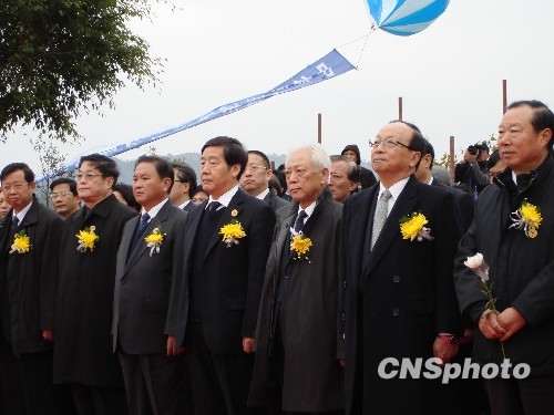 全國人大常委會副委員長、民革中央主席周鐵農(右三),中國國民黨副主席蔣孝嚴(右二),海協(xié)會副會長王在希以及海峽兩岸參加過昆侖關戰(zhàn)役的老戰(zhàn)士代表、抗日著名將領親屬代表等各界人士千余人出席大典,共同緬懷抗日先烈。 中新社發(fā) 黃艷梅 攝