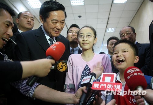 劉奇葆還特意向媒體介紹了兩位來自汶川地震災區的小朋友,一位是抗震小英雄林浩,一位是失去左腿的“芭蕾女孩”李月。兩位小朋友表示,臺灣有許多美景,想去阿里山玩。