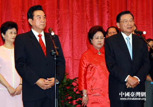 6月28日中午,江丙坤率領的海基會協商代表團一行抵達下榻的酒店,海協會會長陳云林在酒店歡迎,雙方并分別致辭。(中國臺灣網發 王珂 攝)