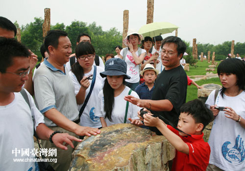 “海峽兩岸大學生古生物夏令營”的營員在觀看化石(圖片來源:遼寧省朝陽市臺辦)