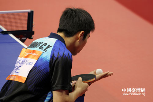 比賽中,莊智淵發(fā)球。(中國(guó)臺(tái)灣網(wǎng) 鐘寶華 攝)