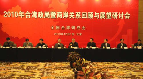 中國臺灣網12月1日北京消息 1日上午,全國臺灣研究會在北京舉辦“2010年臺灣政局暨兩岸關系回顧與展望”研討會,邀請兩岸專家學者回顧和總結一年來的島內政局與兩岸關系發展,以及臺灣年底“五市選舉”后的兩岸關系發展趨勢進行深入探討。與會的四十余位專家學者來自全國各地包括海峽對岸的研究機構和高校,海峽兩岸關系協會副會長王在希、中華文化發展促進會副會長辛旗等出席了研討會。