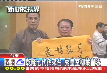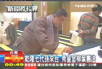 中國臺(tái)灣網(wǎng)12月9日消息 據(jù)臺(tái)灣TVBS電視臺(tái)報(bào)道,清朝皇帝乾隆第7代嫡孫愛新覺羅·恒紹12月8日隨吉林文化交流團(tuán)赴臺(tái)訪問,作為書法家的他,向島內(nèi)民眾展示了他特殊的皇家柳葉體書法。