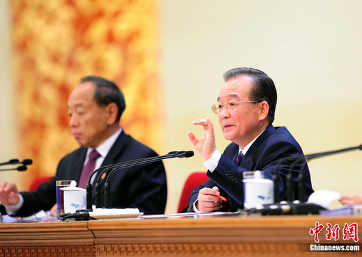 3月14日,十一屆全國人大四次會議閉幕,溫家寶總理舉行記者會答中外記者問時表示,我們和臺灣人民是同胞,骨肉之親析而不殊。中新社發(fā) 張麗君 攝