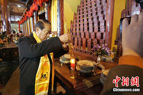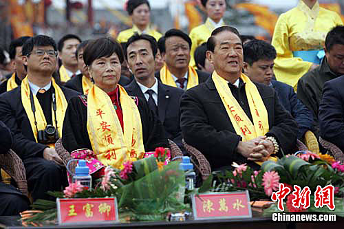 臺灣親民黨主席宋楚瑜5日在洪洞大槐樹尋根祭祖園祭拜宋氏先祖。張云 攝