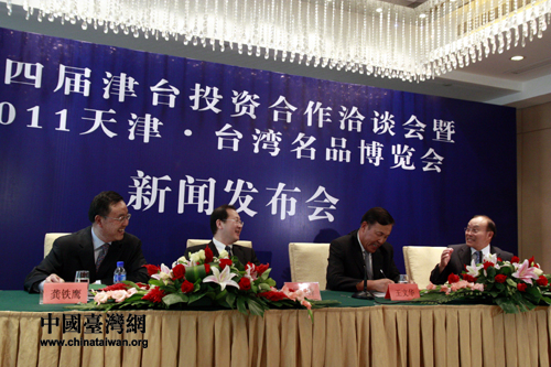第四屆津臺投資合作洽談會暨2011天津·臺灣名品博覽會新聞發布會在津舉辦。圖為發布會現場。(中國臺灣網 馬迪 攝)