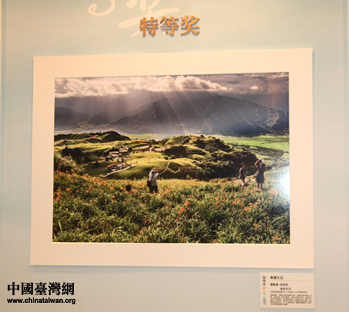 臺灣慈濟大學的陳福堂同學憑借這幅《希望之丘》獲得了特等獎(中國臺灣網 楊永青 攝)