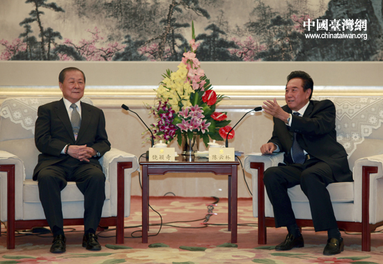 25日上午,全國政協港澳臺僑委員會主任、海峽兩岸關系協會會長陳云林在北京會見了臺灣兩岸民意代表交流基金會董事長饒穎奇為團長的臺灣民意代表交流參訪團。(中國臺灣網 田云鵬 攝)