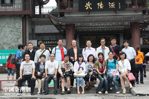 第八屆海峽兩岸媒體湖南聯合采訪團成員在湖南張家界武陵源景區合影留念。(中國臺灣網網 王怡然 攝)