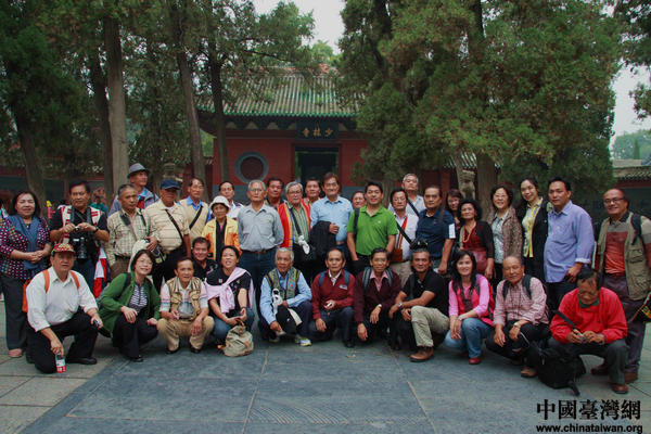 臺灣少數(shù)民族長老頭目們在少林寺前合影留念。(中國臺灣網(wǎng) 芮益芳 攝)
