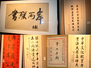 海峽兩岸文化交流盛事上海“海峽杯”首屆書法大展11日在上海圖書館開幕。國(guó)臺(tái)辦主任王毅、海協(xié)會(huì)會(huì)長(zhǎng)陳云林,以及連戰(zhàn)、吳伯雄、宋楚瑜、郁慕明、蔣孝嚴(yán)等兩岸知名人士的墨寶同臺(tái)展出。 |