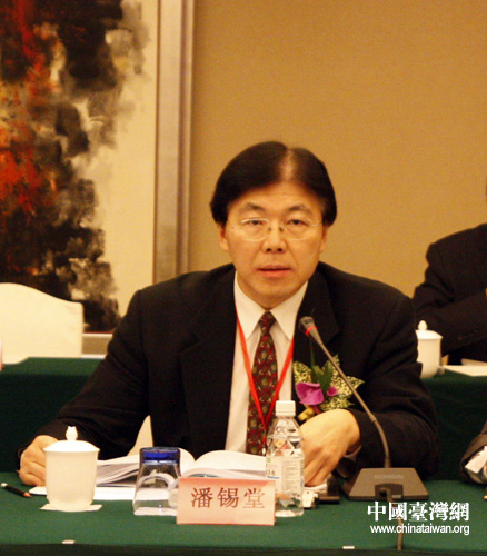 第二屆兩岸關(guān)系和平發(fā)展研討會(huì)26日在上海召開(kāi),圖為臺(tái)灣淡江大學(xué)中國(guó)大陸研究所教授、海峽兩岸學(xué)術(shù)文化交流協(xié)會(huì)副理事長(zhǎng)潘錫堂在研討會(huì)上發(fā)言。(中國(guó)臺(tái)灣網(wǎng) 李杰 攝)