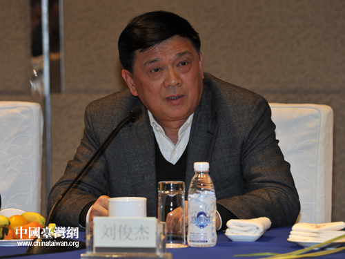 四川省臺辦主任劉俊杰在座談會上發言。(圖片來源:四川省臺辦)