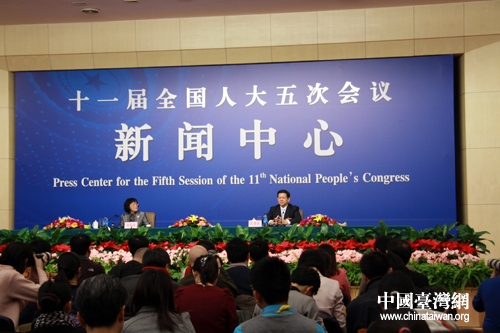 十一屆全國人大五次會議7日在梅地亞中心舉行記者會,商務部部長陳德銘就“擴消費促流通和發展對外經貿”的相關問題回答中外記者的提問。(中國臺灣網 王偉 攝)