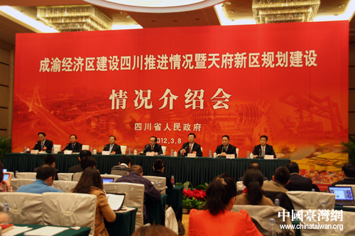 成渝經(jīng)濟(jì)區(qū)建設(shè)四川推進(jìn)情況暨天府新區(qū)規(guī)劃建設(shè)情況介紹會(huì)8日下午在北京召開。(中國(guó)臺(tái)灣網(wǎng) 楊麗 攝)