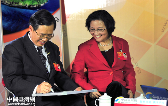 中國臺灣網3月11日北京消息 9日,正在參加十一屆全國兩會的臺籍代表陳蔚文、陳云英做客中國臺灣網,暢談履職感受。兩位代表分別寫下“認真履職,為兩岸和平發展獻計謀策”和“篳路藍縷、再創輝煌”的字句,并表示,無論明年能否連任全國人大代表,都將繼續為促進兩岸關系發展、保障臺胞權益盡綿薄之力。(記者 田云鵬)