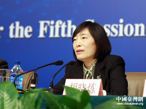 十一屆全國人大五次會議在梅地亞中心舉行記者會,中國人民銀行副行長胡曉煉出席記者會并就兩岸貨幣清算等問題回答記者提問。(中國臺灣網 王偉 攝)