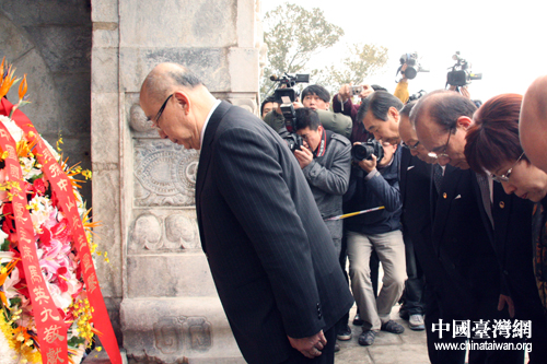 22日上午10時20分許,中國國民黨榮譽主席吳伯雄率領的國民黨大陸訪問團一行攀抵衣冠冢。(中國臺灣網 楊麗 攝)
