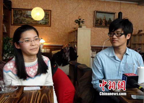 中國(guó)人民大學(xué)2010屆碩士研究生陳怡秀(左)和2010屆本科生徐華陽(yáng)(右)。圖片來源:中國(guó)新聞網(wǎng) 郭思遠(yuǎn) 攝