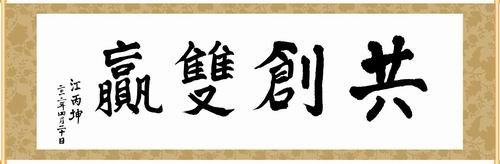 臨行時,江丙坤欣然提筆抒寫“共創雙贏”四字同大家共勉。