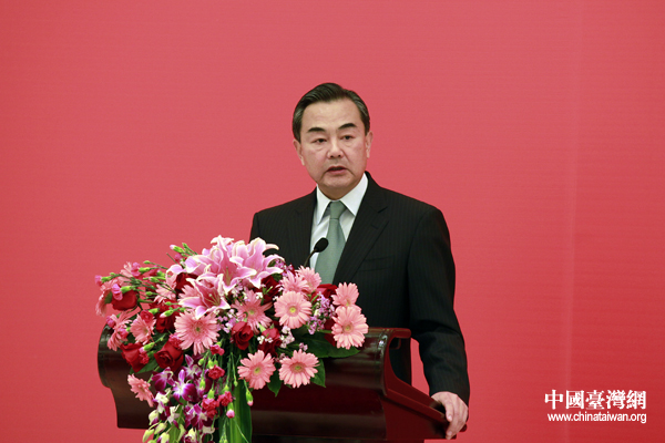 國務院臺灣事務辦公室8日晚間在北京舉行招待晚宴慶祝全國臺企聯(lián)成立五周年。中共中央臺辦、國務院臺辦主任王毅出席晚宴并致辭。(中國臺灣網(wǎng) 王偉 攝)