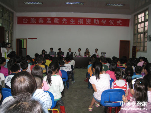 中國(guó)臺(tái)灣網(wǎng)5月31日撫州消息 5月30日,六一兒童節(jié)來(lái)臨之際,臺(tái)灣亞煜國(guó)際集團(tuán)總經(jīng)理、江西省贛臺(tái)交流服務(wù)中心理事長(zhǎng)蔡孟勛先生,在江西省臺(tái)辦副主任簡(jiǎn)立明、市臺(tái)辦主任廖燕、黎川縣副縣長(zhǎng)何明的陪同下來(lái)到黎川縣宏村鎮(zhèn)中心小學(xué),為20名貧困學(xué)生送來(lái)書(shū)包、文具、運(yùn)動(dòng)服及一萬(wàn)多元助學(xué)金。