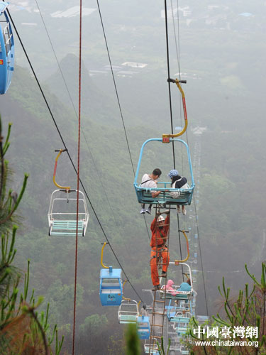 中國(guó)臺(tái)灣網(wǎng)6月1日桂林消息 5月26日,廣西桂林,大雨低溫。當(dāng)天上午,桂林堯山觀光纜車(chē)因機(jī)械故障停止運(yùn)行,78名游客被困1400米段長(zhǎng)的高空纜車(chē),其中有22名臺(tái)灣游客。