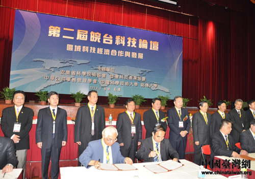 中國臺灣網6月11日消息 日前,由安徽省科協、臺灣科技產業協會、臺灣“中華公共事務管理學會”、中國科技大學、臺灣銘傳大學共同主辦的第二屆皖臺科技論壇在臺灣成功舉辦。由安徽副省長倪發科擔任團長,省政府副秘書長余焰爐,省科協黨組書記、常務副主席周建強為副團長,59家單位、98人組成的安徽代表團赴臺參加論壇。兩岸共有137家單位、608位專家學者參加論壇活動。