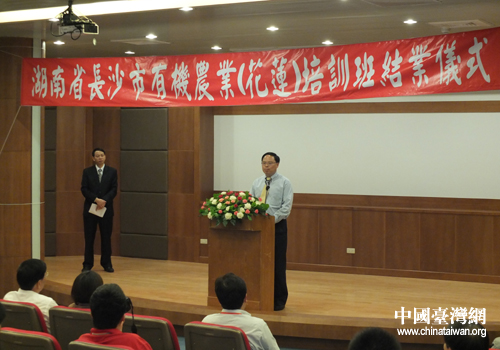 6月11日下午,長沙市有機農(nóng)業(yè)(花蓮)培訓班結業(yè)儀式在花蓮縣壽豐鄉(xiāng)農(nóng)會舉行,長沙市市長張劍飛作結業(yè)講話。(圖片來源:湖南省臺辦)