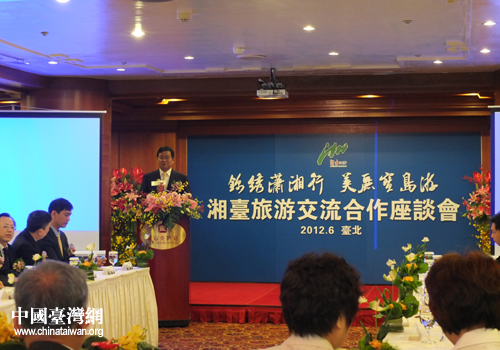 中國臺灣網(wǎng)6月14日臺北消息 6月13日下午,湖南省人民政府在臺北圓山大飯店舉行主題為“錦繡瀟湘行 美麗寶島游”的湘臺旅游合作座談會。湖南省旅游局、湖南省五家具備赴臺旅游組團資質(zhì)的旅行社負責人與臺灣海峽兩岸觀光旅游交流協(xié)會、臺灣觀光協(xié)會等臺灣業(yè)界負責人共80人出席座談會。