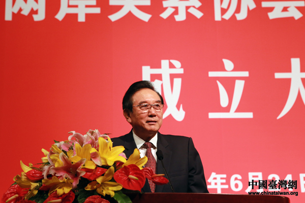 6月24日上午,海峽兩岸關系協會書畫交流分會成立大會在北京釣魚臺國賓館舉行。圖為海峽兩岸關系協會會長陳云林在成立大會上致辭。(中國臺灣網 于斯文 攝)