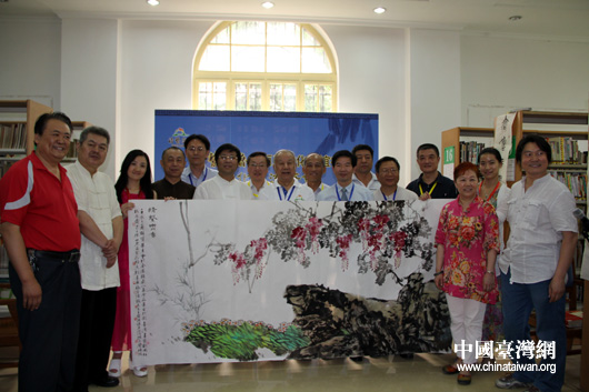 兩岸書畫家合影留念。(中國臺灣網 芮益芳 攝)