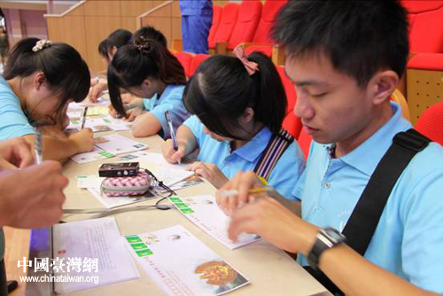 臺灣學生認真寫下對親人的祝福。(圖片來源:河南省臺辦)