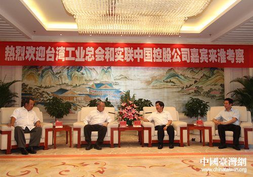 臺灣工業總會和實聯中國控股公司嘉賓來淮安考察,圖為會見場面。(圖片來源:淮安市臺辦)