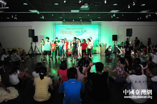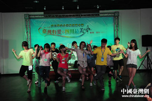 中國臺灣網7月24日云林消息 “捏,捏,捏泥巴……”“啵,啵啵,啵,啵啵……”參加“四川學生臺灣風情夏令營”的川臺學生表演著精心編排的節目。日前,在臺灣環球科技大學藝術中心,來自川臺兩地的近百位學生在這里,用歌聲,用舞蹈,用擁抱,生動演繹“臺灣有愛,四川最美”。